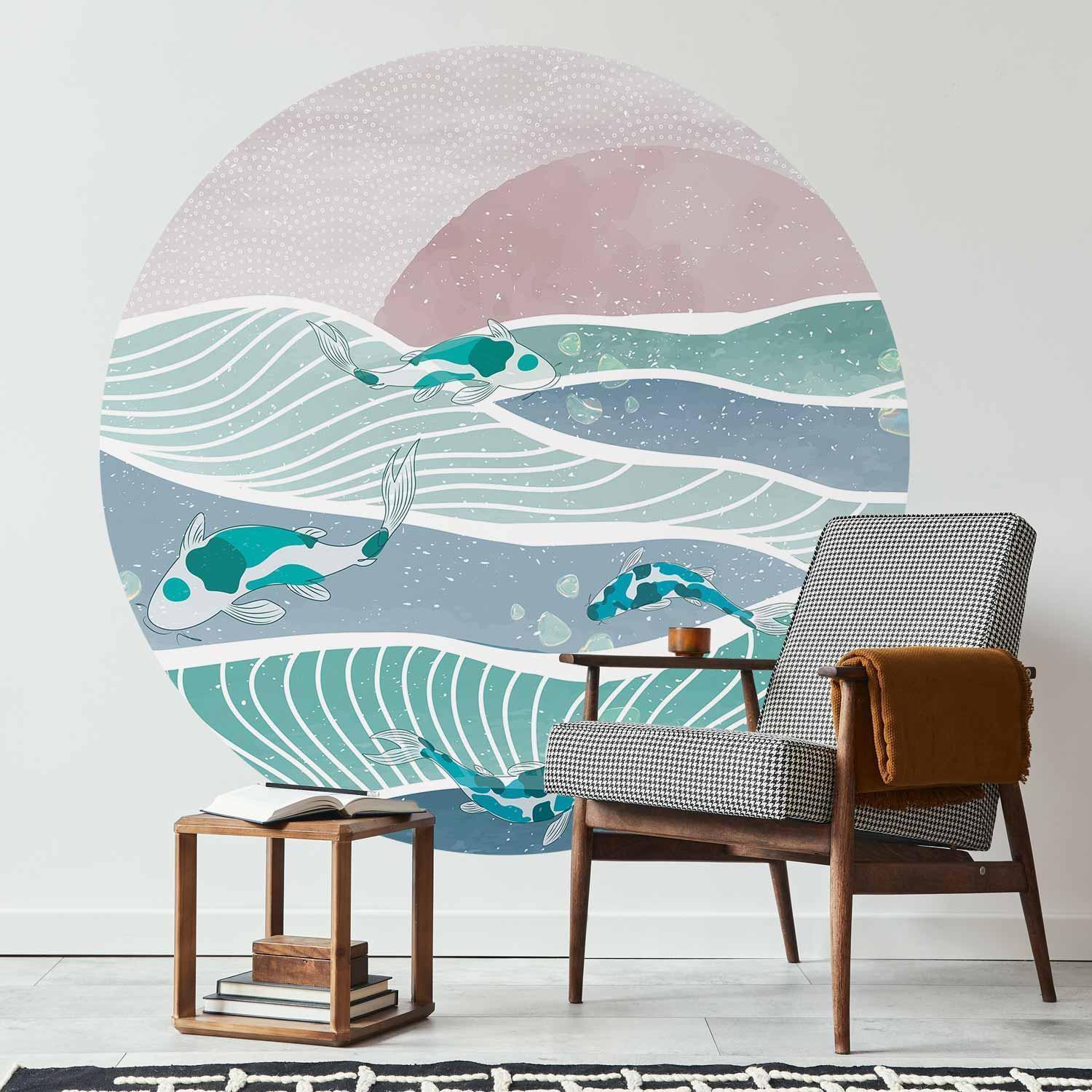 Runde Fototapete - Fish on the waves