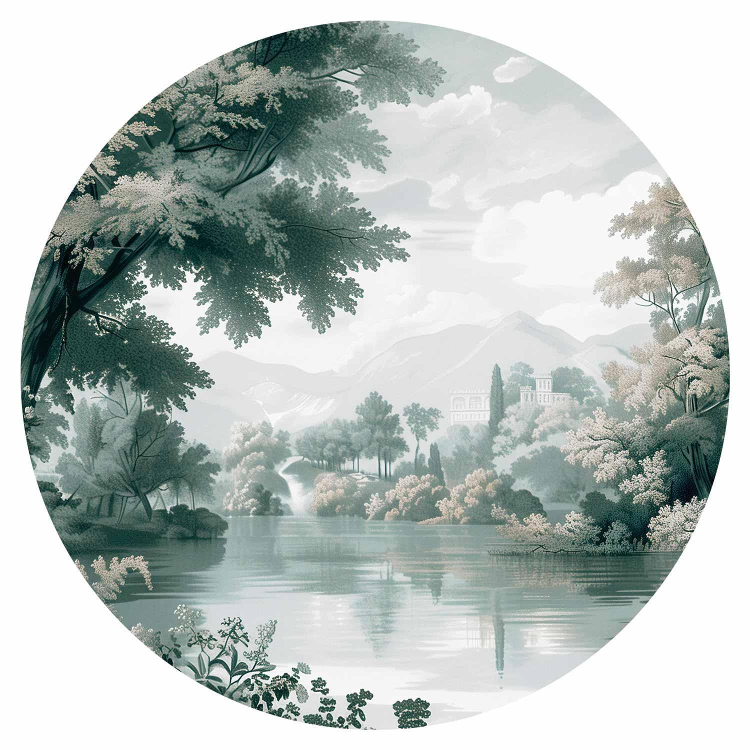 Runde Fototapete - Landscape with a park and lake in retro greens