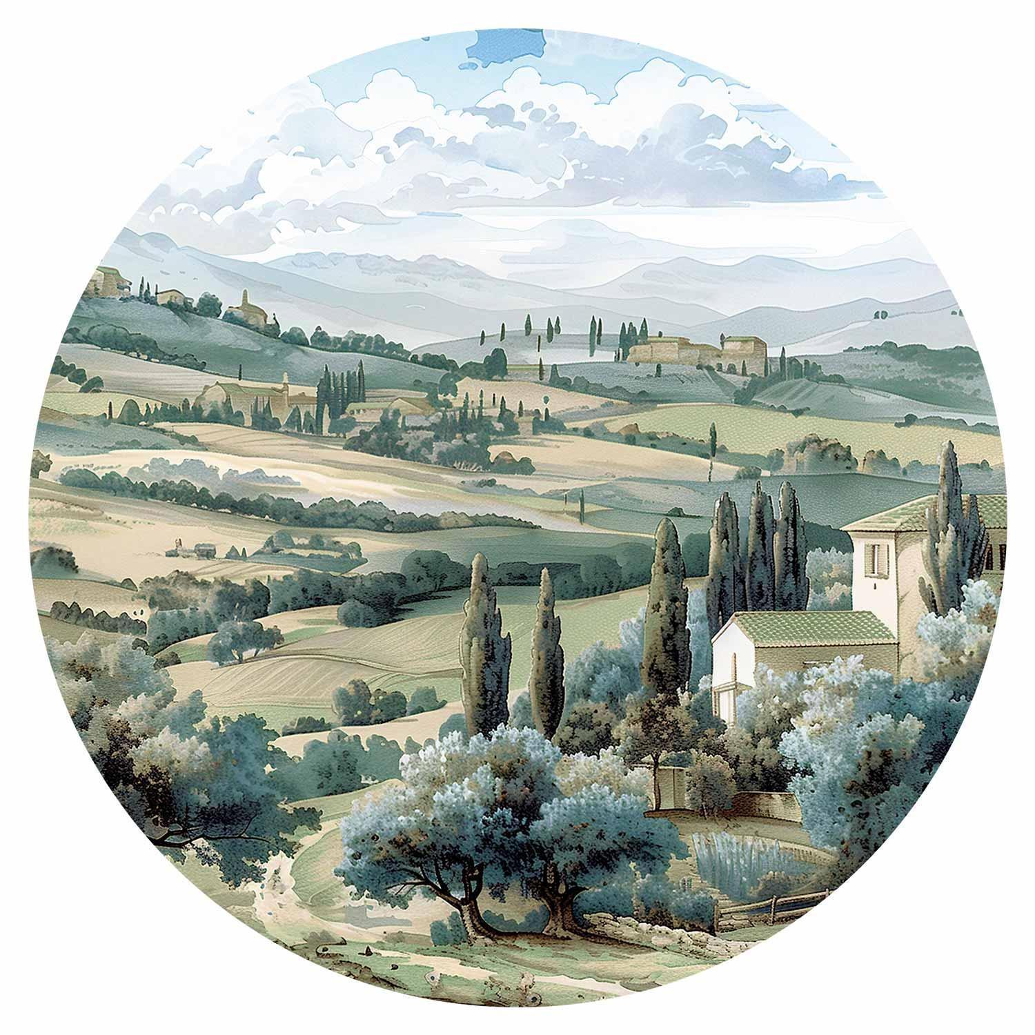 Entdecken Sie eine außergewöhnliche Wanddekoration mit unserer runden Fototapete, die eine perfekte Kombination aus Ästhetik und Funktionalität darstellt. Die universelle Kreisform fügt sich nahtlos sowohl in moderne als auch in klassische Inneneinrichtungen ein. Strapazierfähige und leicht zu montierende runde Fototapeten helfen, auf einfache Weise einen originellen Raum zu schaffen – zu Hause, im Büro oder in der Gastronomie. „Runde Fototapete - Landscape with sunny green fields” ist in verschiedenen Größen erhältlich und ermöglicht so eine perfekte Anpassung an die dekorierte Fläche. Die Investition in eine runde Fototapete ist nicht nur eine visuelle Aufwertung des Interieurs, sondern auch eine praktische Lösung zur Unterstützung des psychischen Wohlbefindens. Ein ästhetisches Umfeld beeinflusst Wohlbefinden und Produktivität, und sorgfältig ausgewählte Dekorelemente können die Stimmung deutlich verbessern oder die Kreativität anregen.
