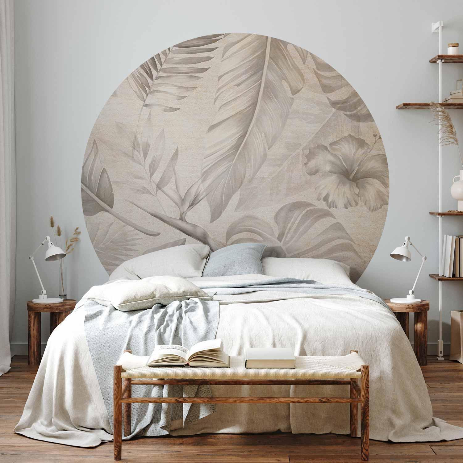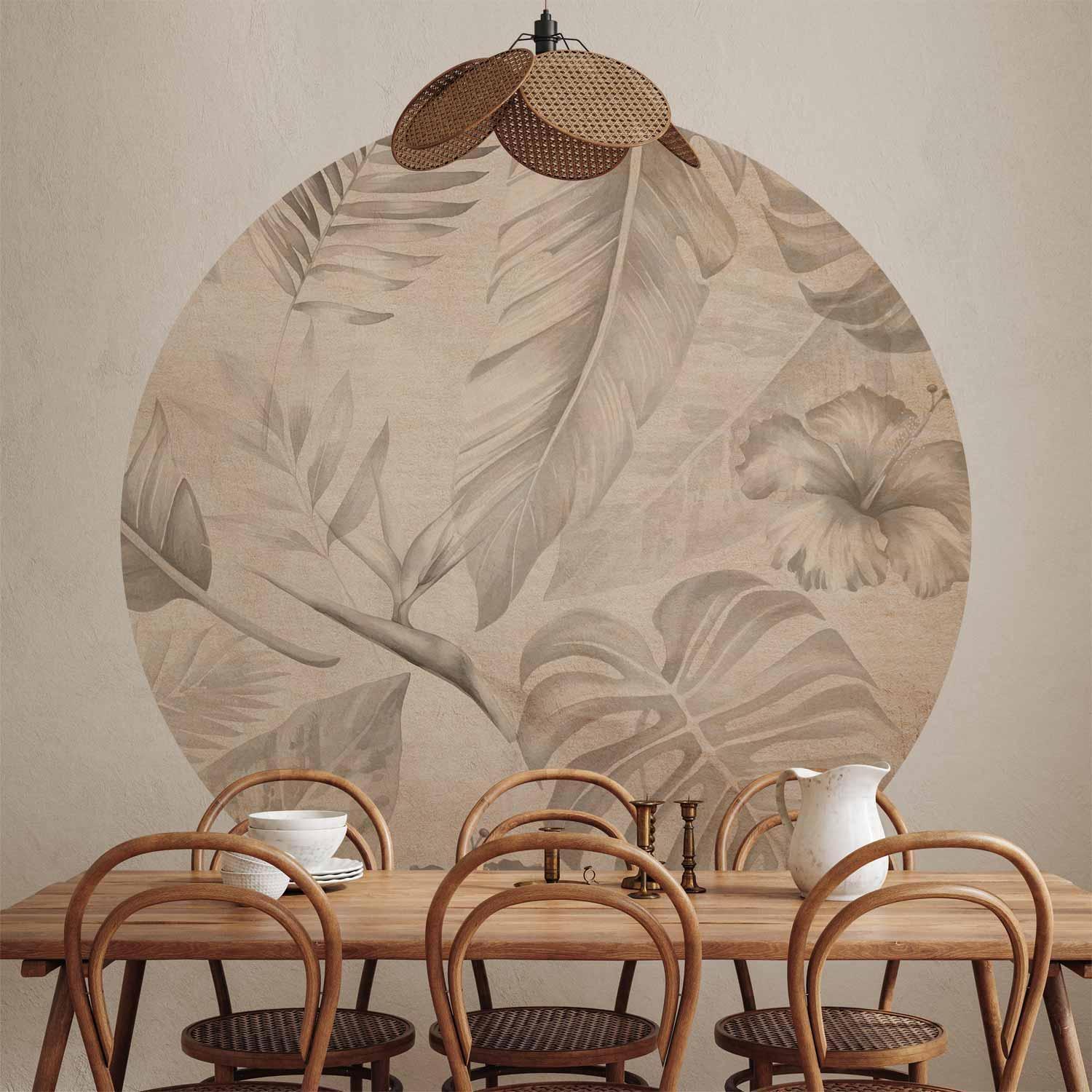 Entdecken Sie eine außergewöhnliche Wanddekoration mit unserer runden Fototapete, die eine perfekte Kombination aus Ästhetik und Funktionalität darstellt. Die universelle Kreisform fügt sich nahtlos sowohl in moderne als auch in klassische Inneneinrichtungen ein. Strapazierfähige und leicht zu montierende runde Fototapeten helfen, auf einfache Weise einen originellen Raum zu schaffen – zu Hause, im Büro oder in der Gastronomie. „Runde Fototapete - Tropics in sepia” ist in verschiedenen Größen erhältlich und ermöglicht so eine perfekte Anpassung an die dekorierte Fläche. Die Investition in eine runde Fototapete ist nicht nur eine visuelle Aufwertung des Interieurs, sondern auch eine praktische Lösung zur Unterstützung des psychischen Wohlbefindens. Ein ästhetisches Umfeld beeinflusst Wohlbefinden und Produktivität, und sorgfältig ausgewählte Dekorelemente können die Stimmung deutlich verbessern oder die Kreativität anregen.
