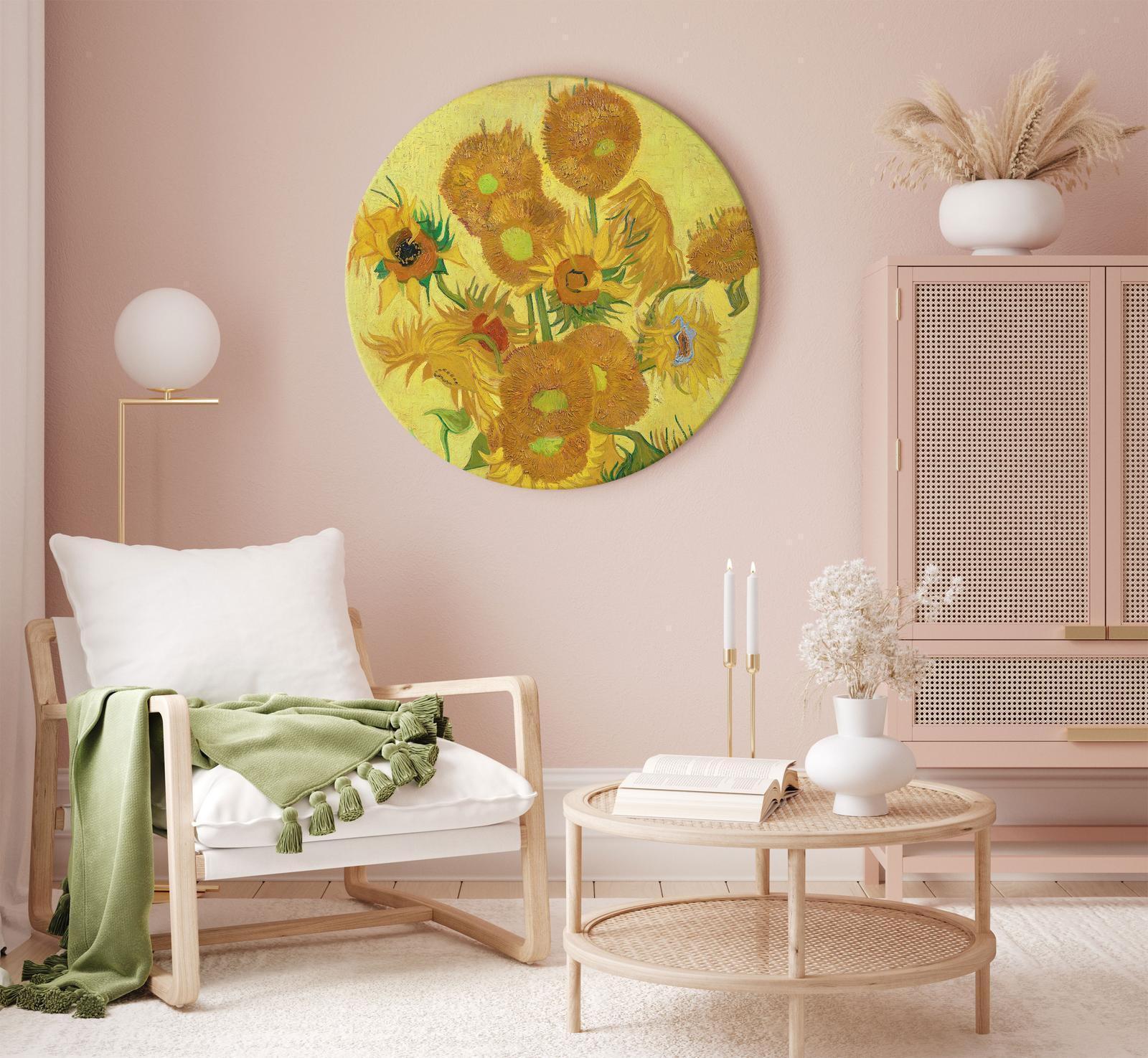 Das runde Bild auf Leinwand "Rundes Bild - Vincent van Gogh – Still Life: Vase With Fifteen Sunflowers" ist eine moderne Dekoration, die perfekt zu den neuesten Einrichtungstrends passt und sowohl traditionell eingerichtete Räume als auch moderne Wohnungen und Büros bereichert. Eine Metamorphose ist im Gange! Egal, ob Sie Ihr Zuhause - ein Wohnzimmer, Schlafzimmer, Arbeitszimmer oder Jugendzimmer - umgestalten oder ein Büro, einen Warteraum, ein Café, einen Schönheitssalon oder einen anderen öffentlichen Raum dekorieren möchten, ein rundes Leinwandbild bringt eine neue Qualität in die Einrichtung und durchbricht die Monotonie. Runde Gemälde auf Leinwand aus unserem Angebot passen zu verschiedenen Raumgestaltungen und Stilen. Darunter befinden sich unsere Vorschläge für Glamour, Boho, Vintage, industrielle Innenräume und viele andere. Wenn Sie auf der Suche nach einer traditionellen Dekoration mit einem modernen Touch sind, ist das runde Wandbild der richtige Vorschlag für Sie!