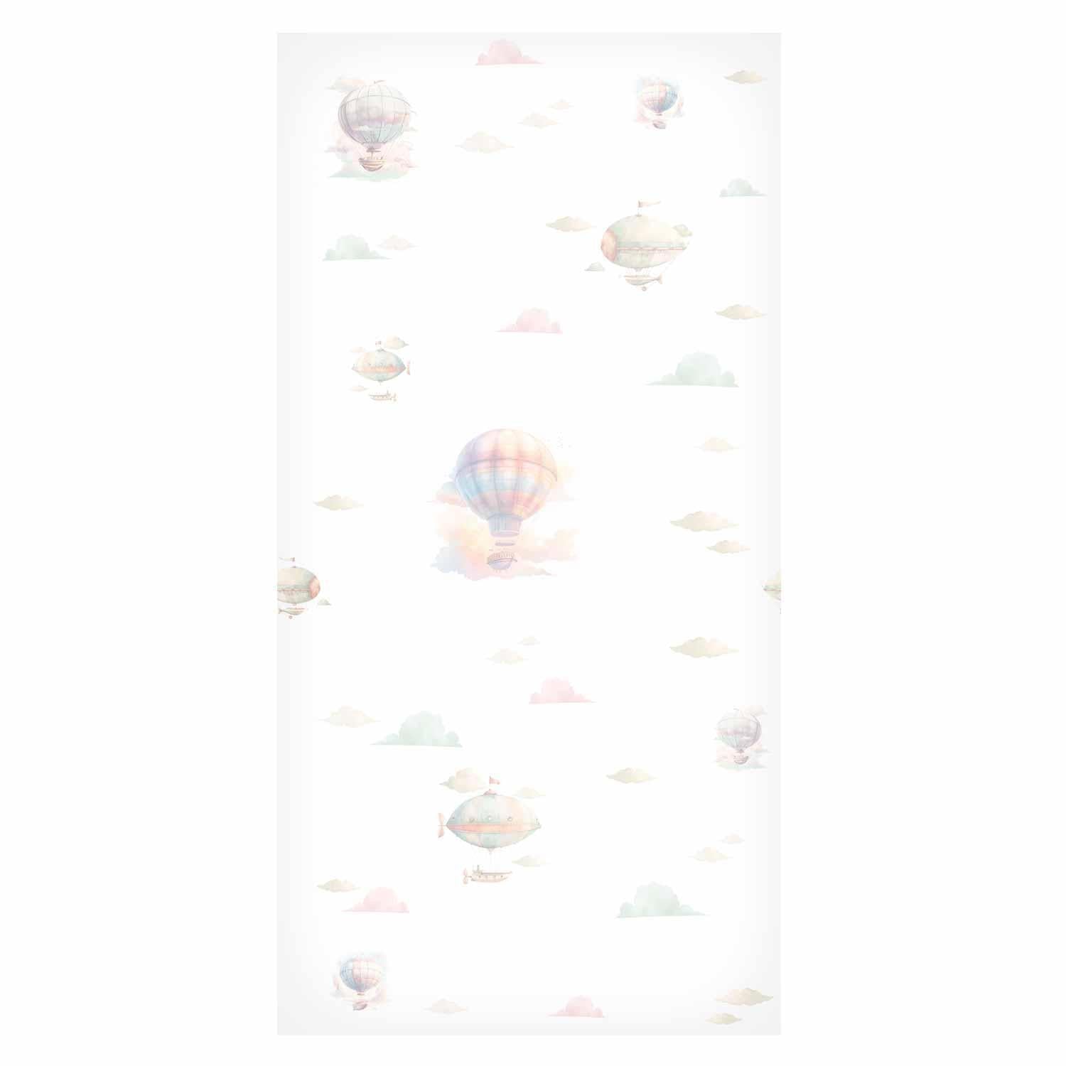 Tapete - Watercolor - Colorful balloons and airships against a backdrop of colorful clouds