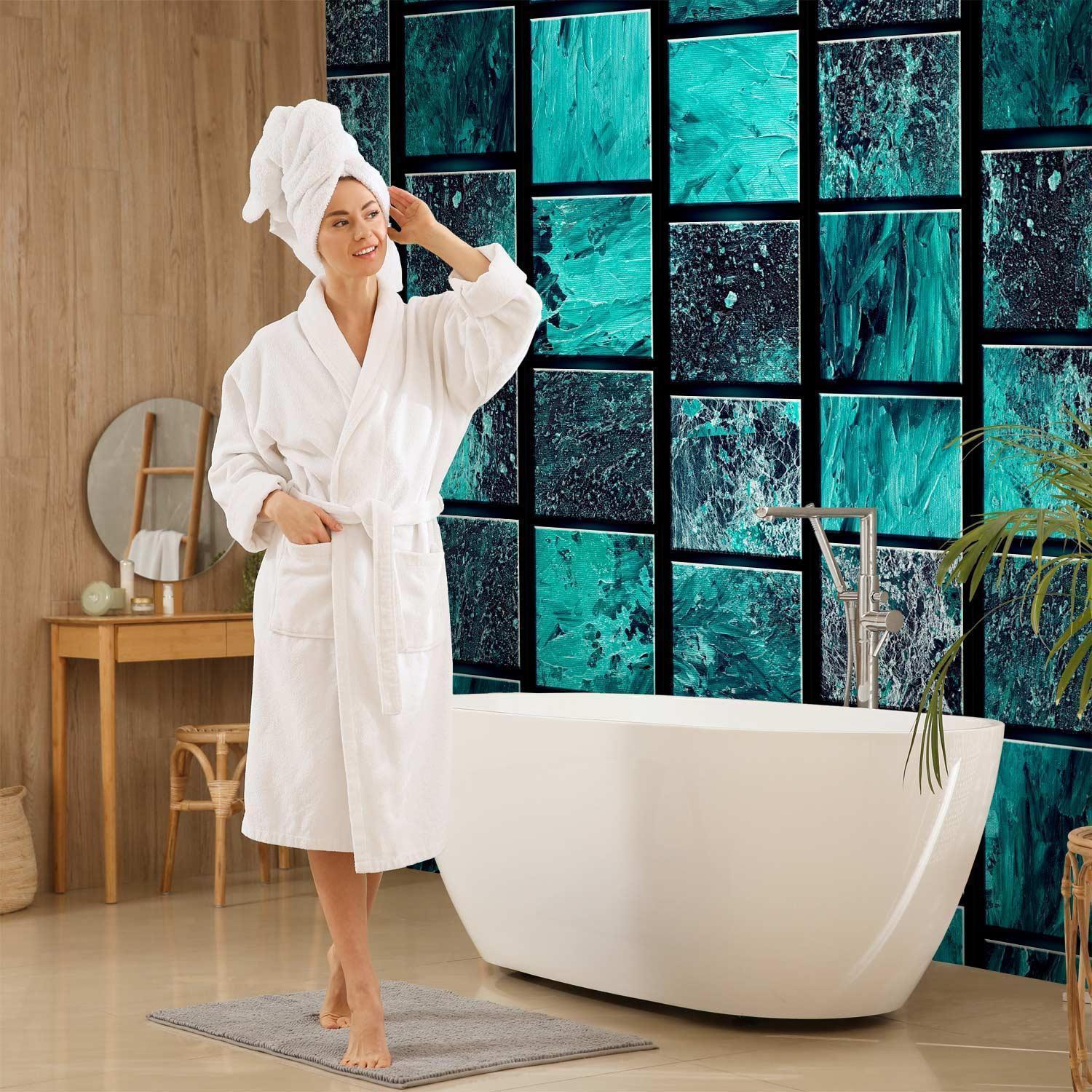 - Wasserfest – aus Premium-Material gefertigt und mit Schutzlack versehen, ideal für Küchen, Bäder und andere anspruchsvolle Räume. Anwendungssatz (Kleber, Lack und Zubehör) GRATIS!
