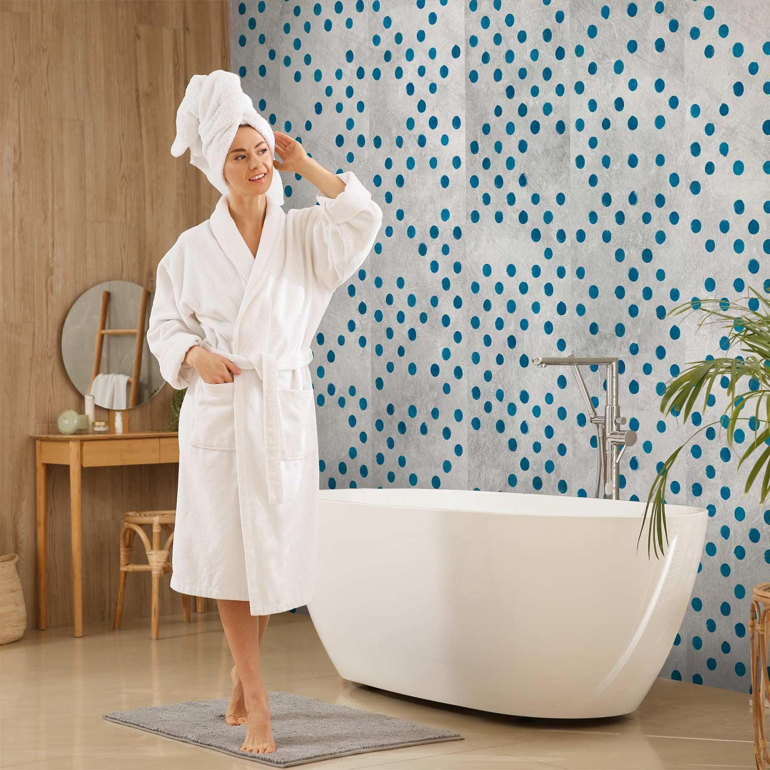 Unsere Tapeten vereinen Ästhetik und Funktionalität. Alle werden digital in HD-Technologie gedruckt, was brillante Farben und eine hervorragende Detailwiedergabe garantiert. Professionelle Pigmente sind lichtbeständig, sodass die Dekoration auch bei starker Sonneneinstrahlung nicht ausbleicht. Vlies, aus dem die Tapeten hergestellt sind, lässt die Wände „atmen“, was besonders in älteren Gebäuden wichtig ist. Unsere Tapeten sind umweltfreundlich und auch für Schlafzimmer sowie Kinderzimmer sicher. Jede Rolle hat eine Länge von 10 m, was die genaue Anpassung der Materialmenge an die Wandabmessungen erleichtert. Sie werden aus sicheren, umweltfreundlichen Materialien hergestellt und eignen sich daher perfekt als Dekoration im ganzen Haus – auch in Schlafzimmern und Kinderzimmern. "Tapete - Dots on Concrete" ist ein langlebiges Produkt, das Ihnen viele Jahre Freude bereiten wird.