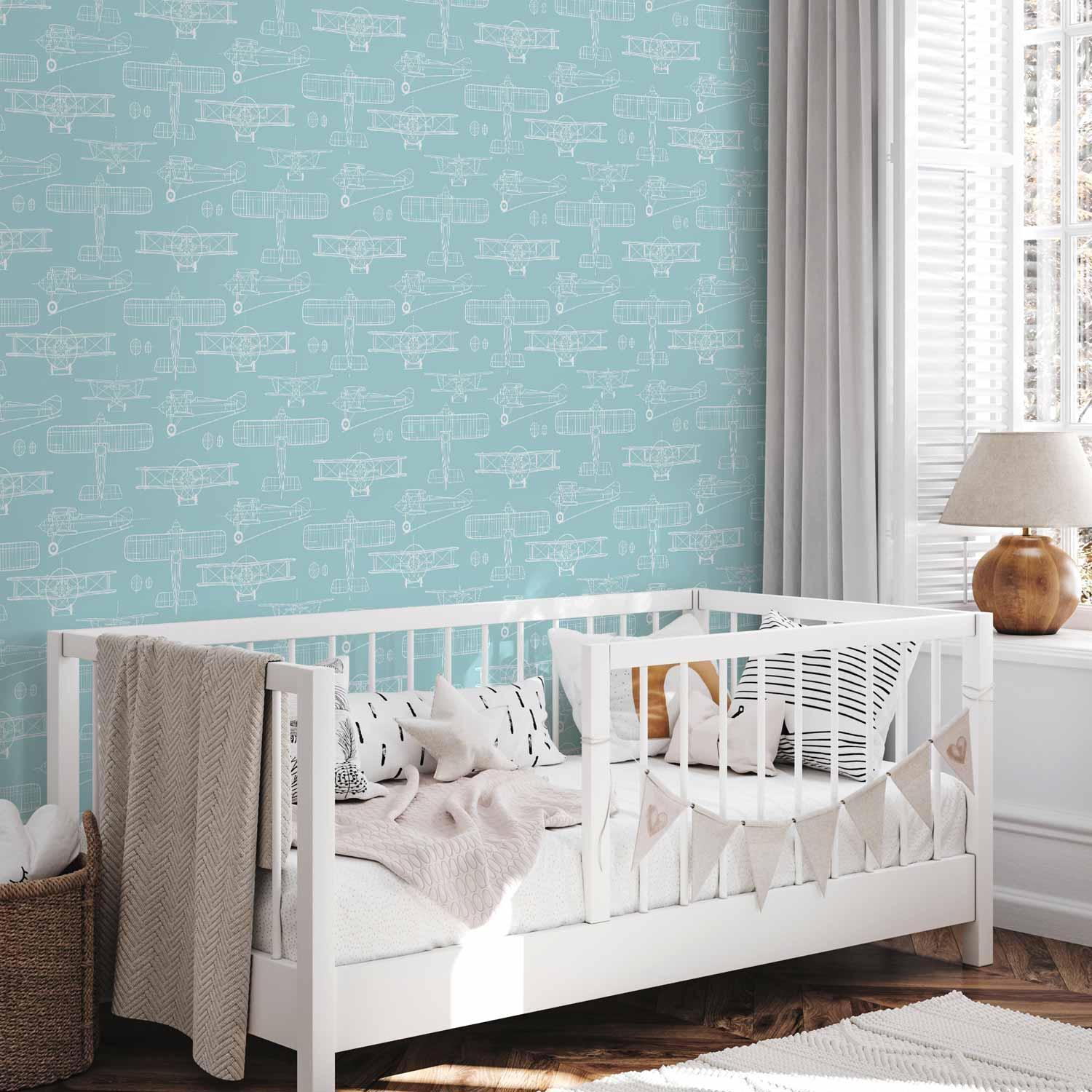 Unsere Tapeten vereinen Ästhetik und Funktionalität. Alle werden digital in HD-Technologie gedruckt, was brillante Farben und eine hervorragende Detailwiedergabe garantiert. Professionelle Pigmente sind lichtbeständig, sodass die Dekoration auch bei starker Sonneneinstrahlung nicht ausbleicht. Vlies, aus dem die Tapeten hergestellt sind, lässt die Wände „atmen“, was besonders in älteren Gebäuden wichtig ist. Unsere Tapeten sind umweltfreundlich und auch für Schlafzimmer sowie Kinderzimmer sicher. Jede Rolle hat eine Länge von 10 m, was die genaue Anpassung der Materialmenge an die Wandabmessungen erleichtert. Sie werden aus sicheren, umweltfreundlichen Materialien hergestellt und eignen sich daher perfekt als Dekoration im ganzen Haus – auch in Schlafzimmern und Kinderzimmern. "Tapete - Sketch - Outline of an airplane in white on a turquoise background." ist ein langlebiges Produkt, das Ihnen viele Jahre Freude bereiten wird.