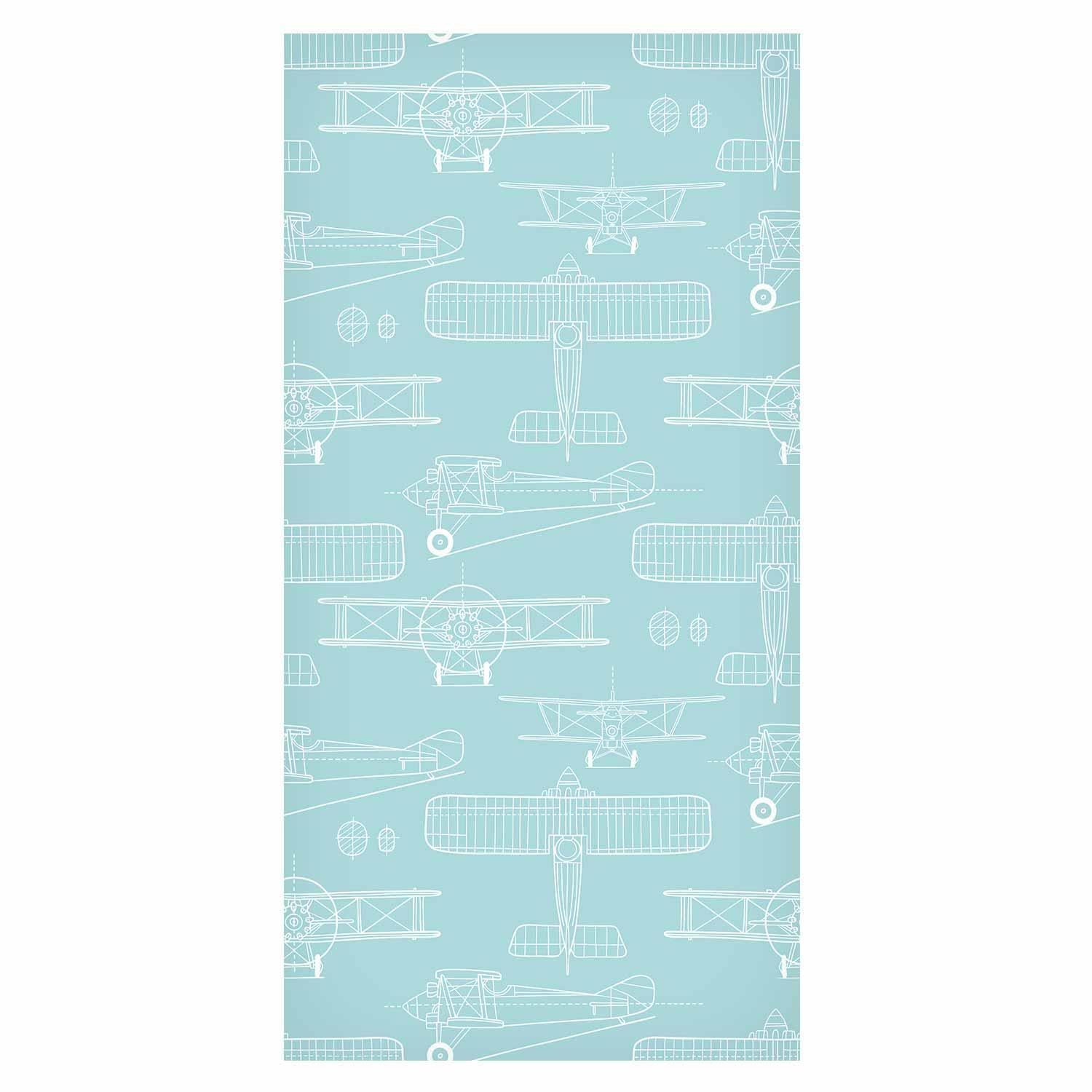 Tapete - Sketch - Outline of an airplane in white on a turquoise background