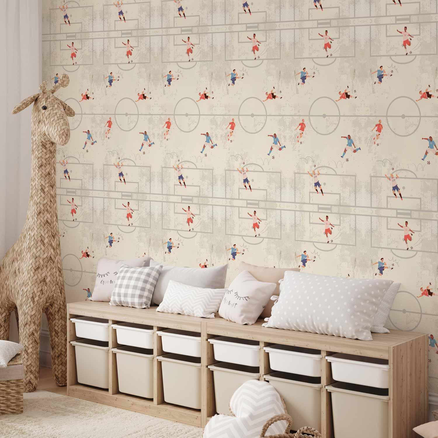 Unsere Tapeten vereinen Ästhetik und Funktionalität. Alle werden digital in HD-Technologie gedruckt, was brillante Farben und eine hervorragende Detailwiedergabe garantiert. Professionelle Pigmente sind lichtbeständig, sodass die Dekoration auch bei starker Sonneneinstrahlung nicht ausbleicht. Vlies, aus dem die Tapeten hergestellt sind, lässt die Wände „atmen“, was besonders in älteren Gebäuden wichtig ist. Unsere Tapeten sind umweltfreundlich und auch für Schlafzimmer sowie Kinderzimmer sicher. Jede Rolle hat eine Länge von 10 m, was die genaue Anpassung der Materialmenge an die Wandabmessungen erleichtert. Sie werden aus sicheren, umweltfreundlichen Materialien hergestellt und eignen sich daher perfekt als Dekoration im ganzen Haus – auch in Schlafzimmern und Kinderzimmern. "Tapete - Soccer Game - Illustration of soccer players in action on the field." ist ein langlebiges Produkt, das Ihnen viele Jahre Freude bereiten wird.