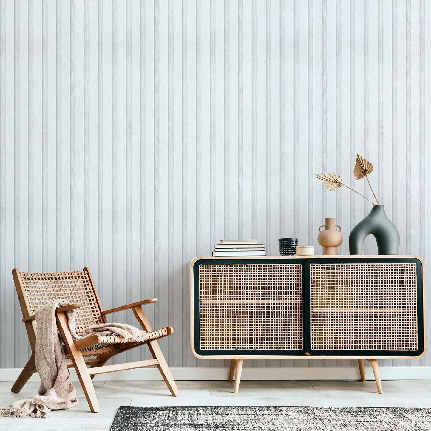 Dieses minimalistische Design passt ideal zu skandinavischen, modernen oder natürlichen Einrichtungsstilen. Besonders in Fluren, Wohnbereichen oder Büros wirkt die Tapete strukturierend und stilvoll.