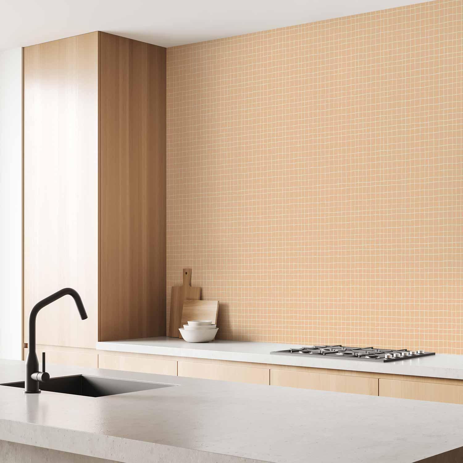 Tapete - Waving Lines - Creamy Grid on a Noisy Pastel Background