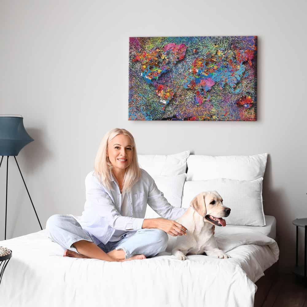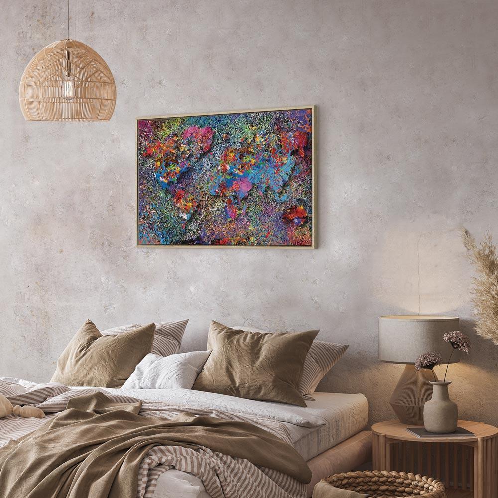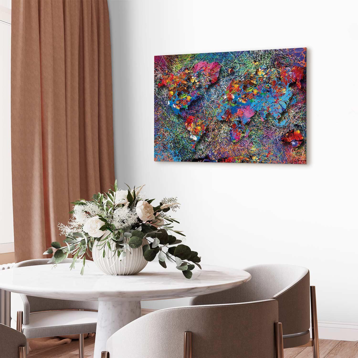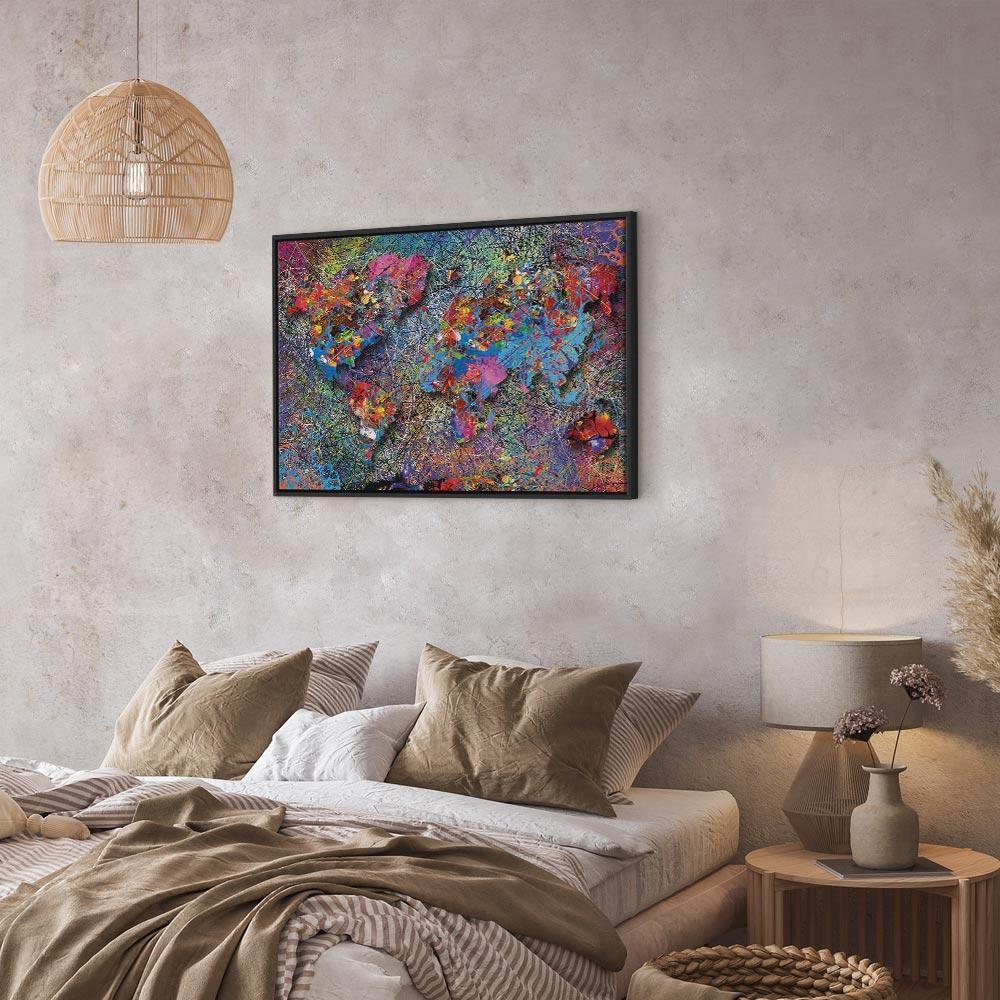 Unsere Bilder sind sicher und geruchsneutral und eignen sich daher ideal für Kinderzimmer. Die Größe wird Ihr Kind sicher beeindrucken! Bilder für Schlafzimmer sind ein echter Blickfang, genauso wie Bilder Wohnzimmer. Dekorieren Sie die Wände in Ihrem privaten Bereich mit einem Bild "Leinwandbild - Map: Jackson Pollock inspiration". Wir empfehlen Bilder für Schlafzimmer , die Sie beruhigen und in eine erholsame Stimmung versetzen. Bilder aus unserer Kollektion werden Ihrem Interieur eine außergewöhnliche Atmosphäre verleihen. Unabhängig vom Raum schaffen auch Kunst Bilder eine gemütliche Atmosphäre für die Gäste. Massive Holzrahmen unterstreichen den einzigartigen Charakter der Schlafzimmerbilder, und ein schneller und sicherer Versand ist ein weiterer Vorteil, der für diese Wanddekorationen spricht Leinwandbilder sind in fünf Varianten erhältlich, sodass jeder Kunde die perfekte Option für seine Bedürfnisse findet.Die Variante auf Strukturleinwand (Standard) ist eine universelle Dekoration, die das Haushaltsbudget nicht belastet.Für Liebhaber edler Materialien ist ein Druck auf italienischer Leinwand aus 100 % Baumwolle die ideale Wahl.Und für Fans der Malerei? Hier überzeugt die außergewöhnliche Premium-Print-Technik – ein Bild, das auf Strukturleinwand gedruckt und von Hand mit einer Schicht transparenten Gels überzogen wird, die die Pinselstriche eines Künstlers imitiert – ein „wie gemalt“-Effekt, aber zu einem günstigeren Preis.Die Variante im soliden Holzrahmen des Typs American Box mit Tiefeneffekt (zwei Rahmenfarben zur Auswahl, Motiv auf Strukturleinwand gedruckt) bietet eine klassische Lösung in neuer Form.Das Akustikbild (Druck auf Strukturleinwand mit einer zusätzlichen Schicht schallabsorbierendem Schaumstoff) ist dagegen ein Volltreffer für alle, die Ästhetik mit Funktionalität verbinden möchten.Zwar sind die beiden letzten Optionen nur für bestimmte Größen von einteiligen Bildern verfügbar, doch bei allen Varianten legen wir GRATIS die erforderliche Anzahl an Haken und Nägeln zur Montage bei.