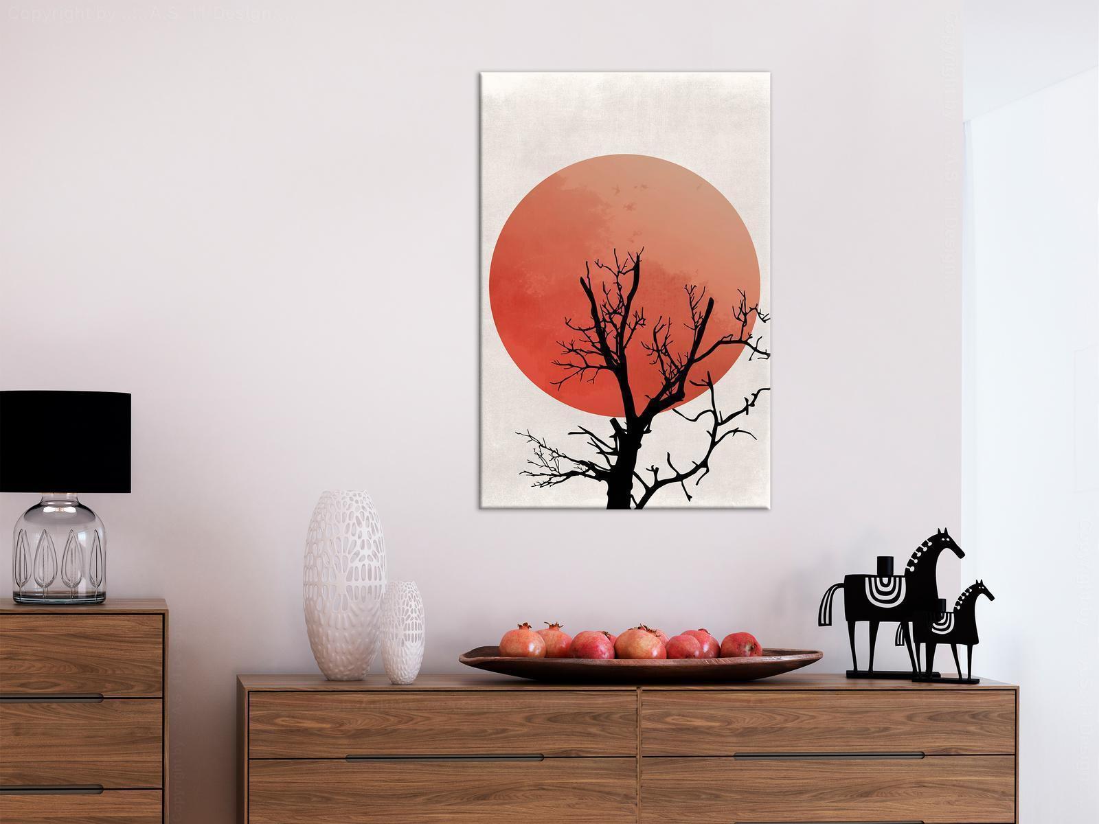 Tauche ein in eine friedvolle Abendstimmung mit diesem eleganten Wandbild. „Am Ende des Tages“ fängt den sanften Übergang vom Tag zur Nacht in warmen, harmonischen Farbtönen ein und schafft eine gemütliche, beruhigende Atmosphäre.