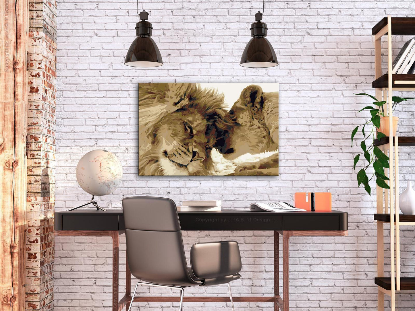 Wandbild zum Ausmalen - Lions In Love | Romantisches Löwenpaar