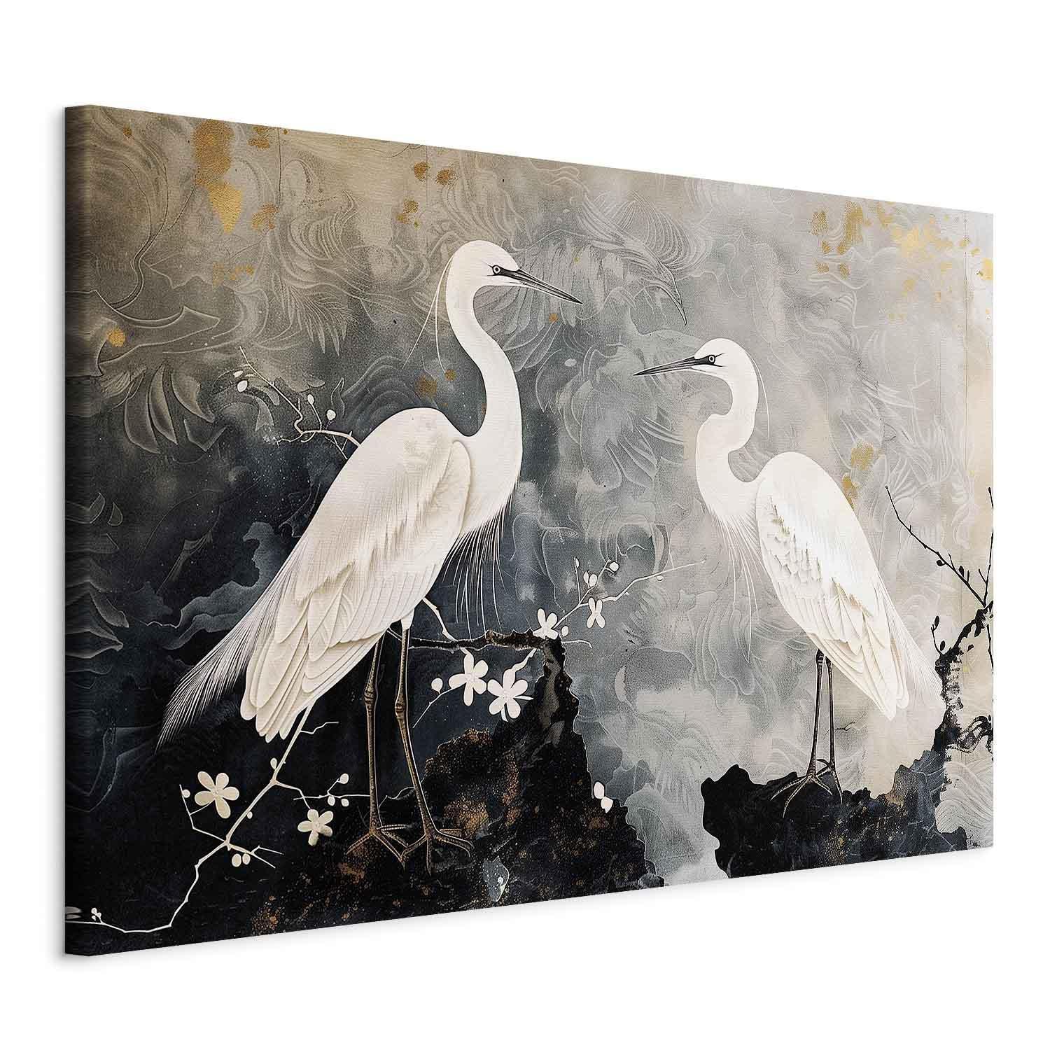 Wandbild XXL - Herons and cherry blossoms - oriental-style illustration depicting birds