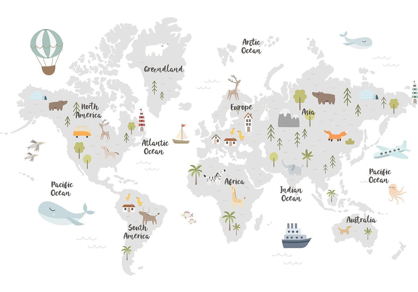 Fototapete - Minimalistische Weltkarte für Kinderzimmer