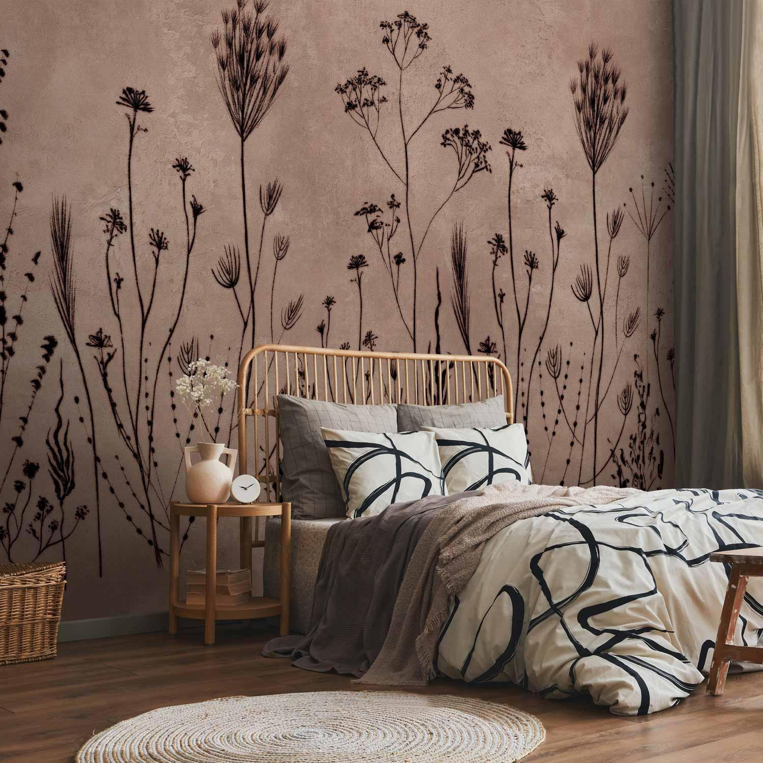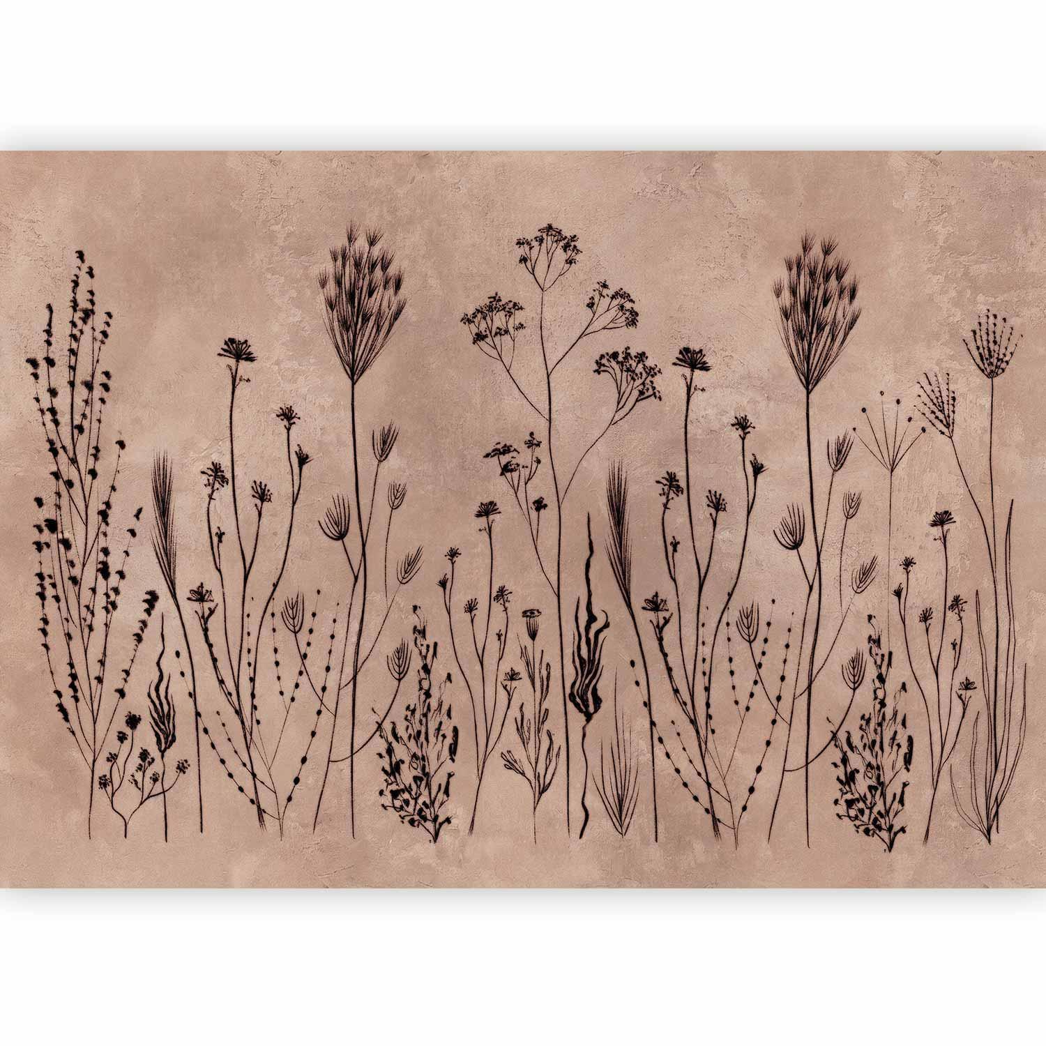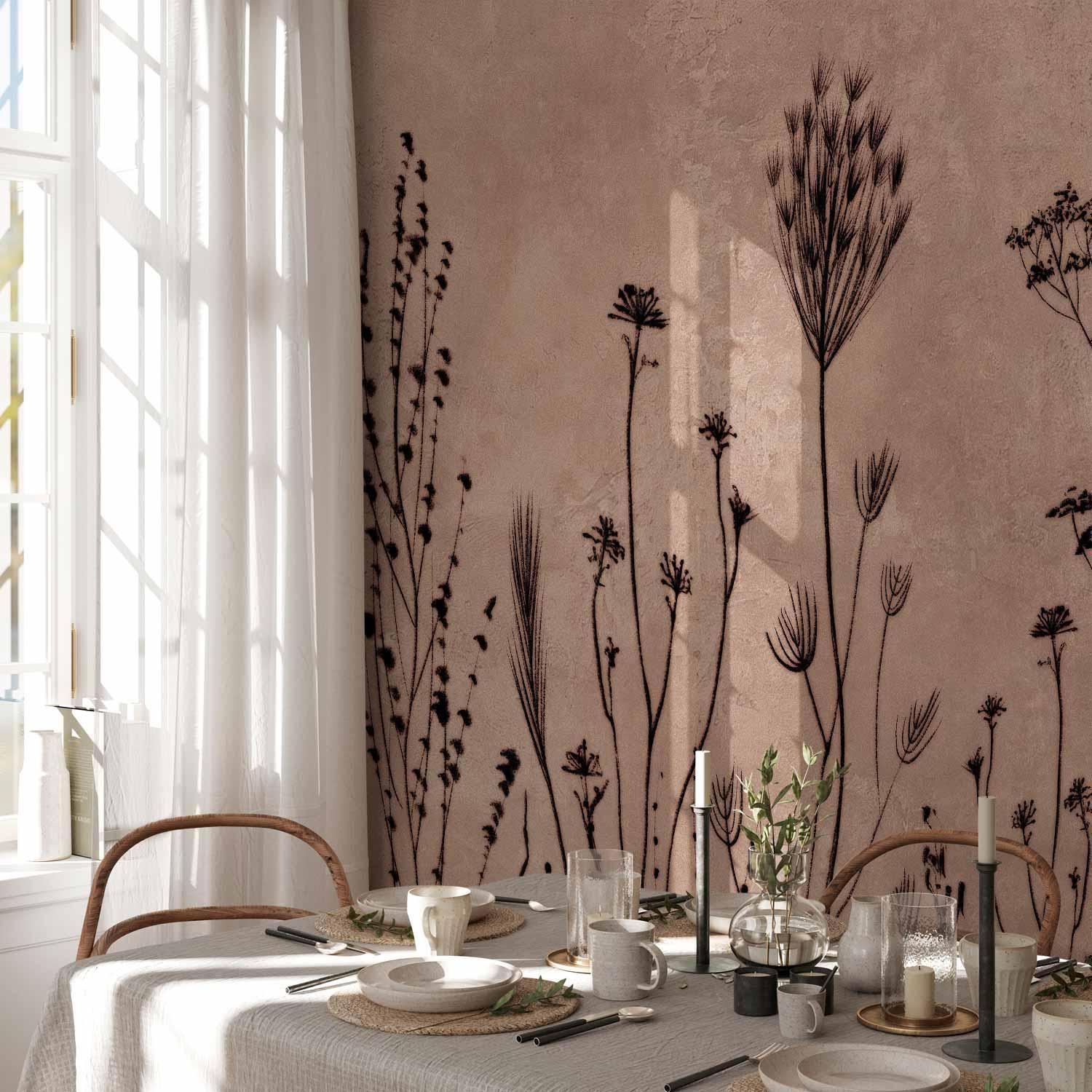 Fototapete Wildblumen – Schwarze Pflanzen auf hellem Hintergrund